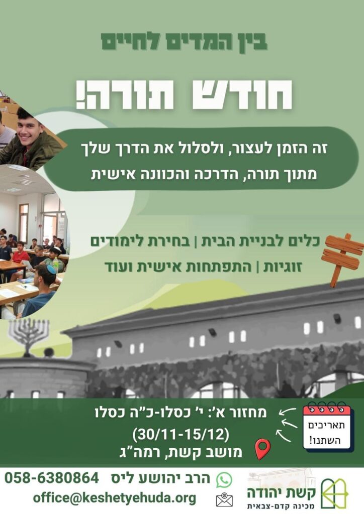 אנו במכינה, נשמח מאוד לחדש ולחזק את הקשר עם כל בוגר. בדף זה נפרסם מעת לעת עדכונים ודברי תורה מבית המדרש של המכינה.